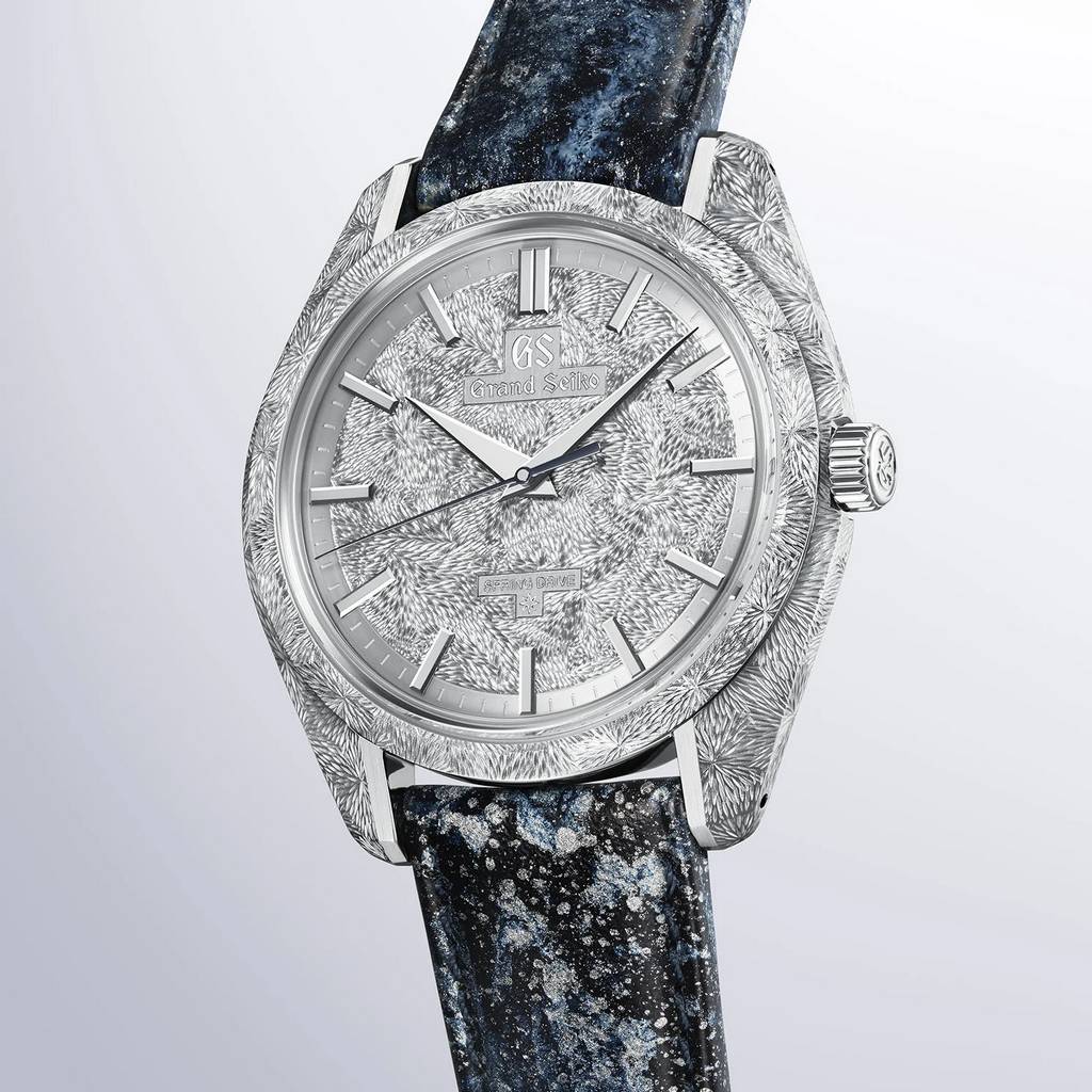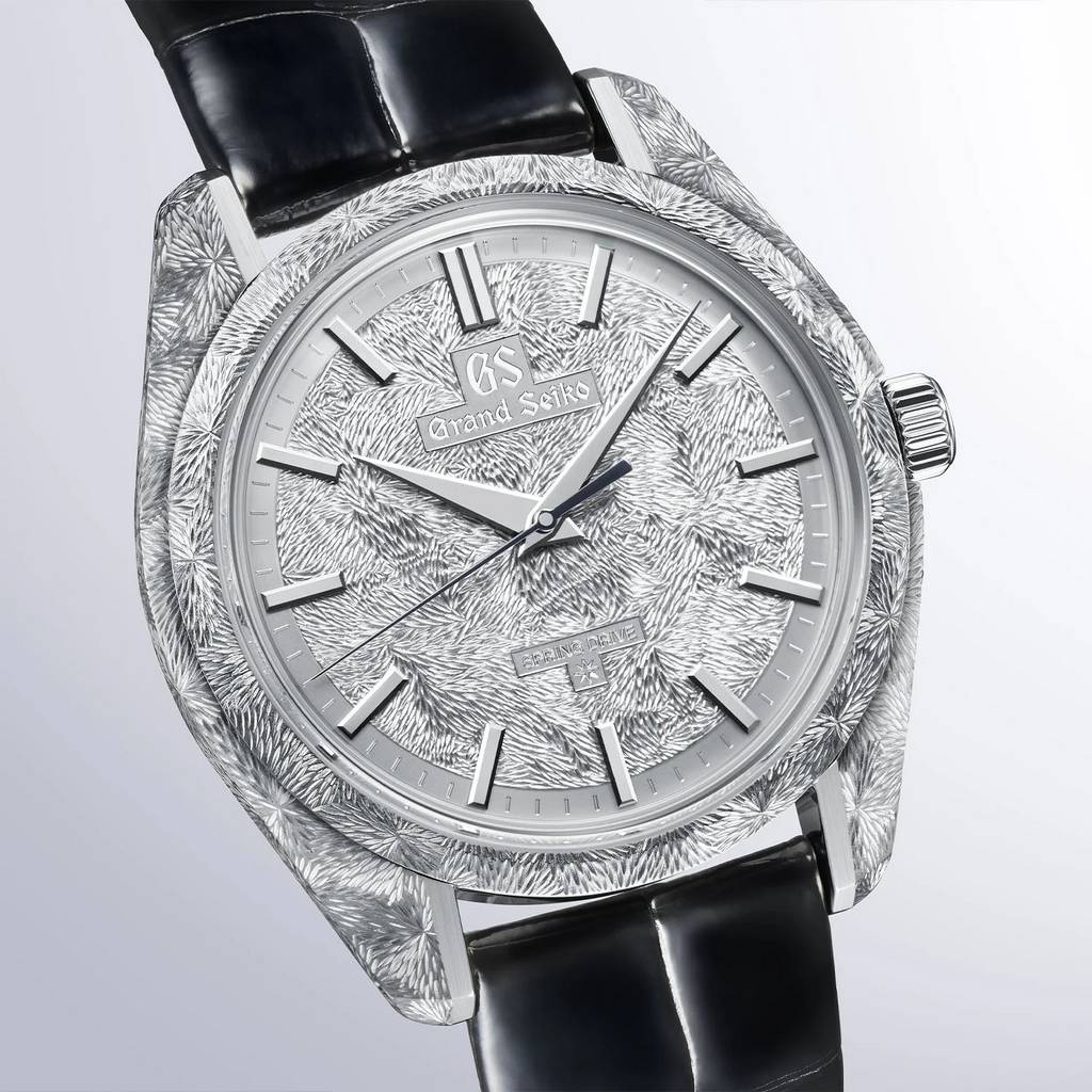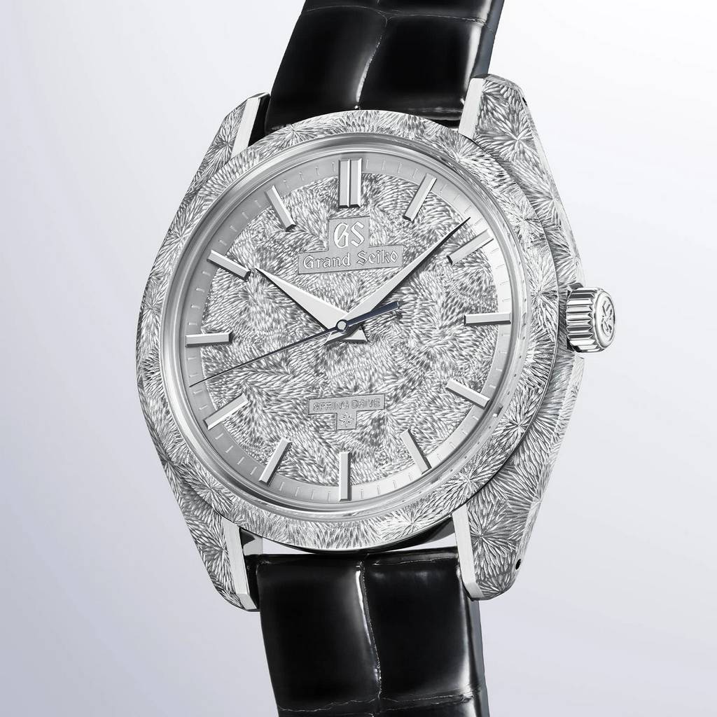 Природа является краеугольным камнем японской культуры и одной из главных тем в творчестве Grand Seiko. Даже расположение производственных площадок японского бренда тщательно продумывается так, чтобы вдохновлять такуми — мастеров-ремесленников. Происходя из элитной часовой мастерской Micro Artist Studio в Сиодзири, японская марка выпускает высококлассную модель Masterpiece SBGZ011 из платины — с корпусом 44GS и циферблатом, украшенными ручной гравировкой, вдохновлённой водопадом Татэсина, и оснащённую ультратонким механизмом Spring Drive с ручным заводом калибра 9R02.